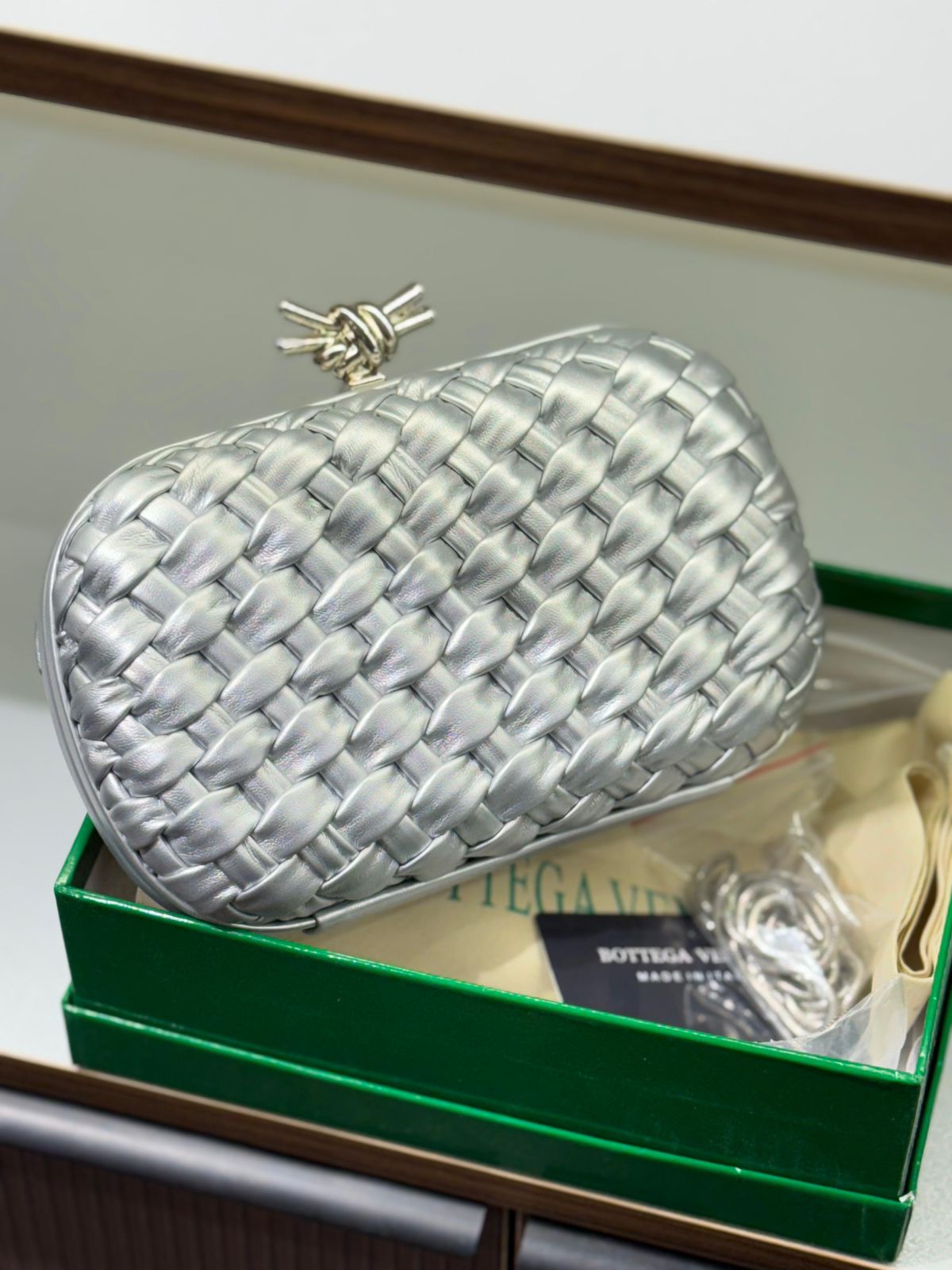 Iconic knotted clasp closure, adding an elegant and distinctive touch