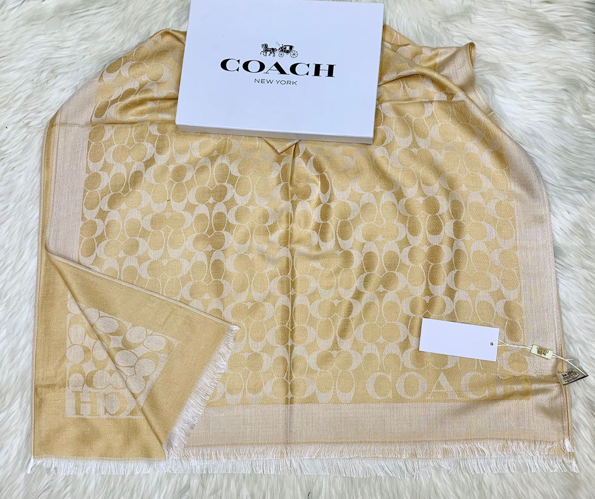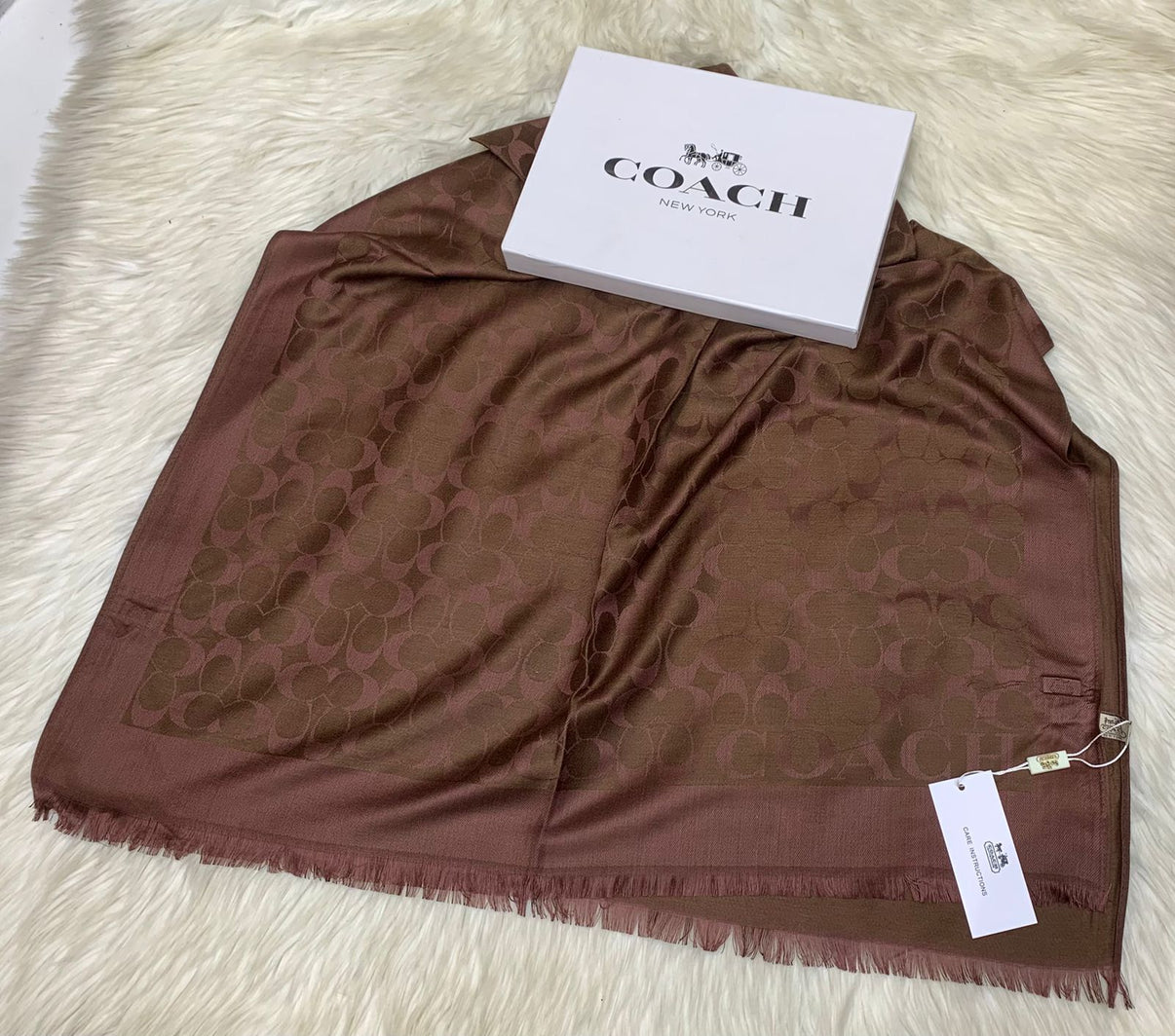 Luxury accessory shawl produced by Coach, combining fashion-forward design with premium materials.