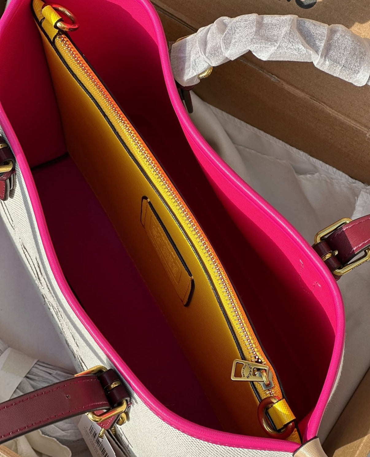 ··Signature Branding: Adorned with Coach’s iconic logo and hardware details for a luxurious touch.
