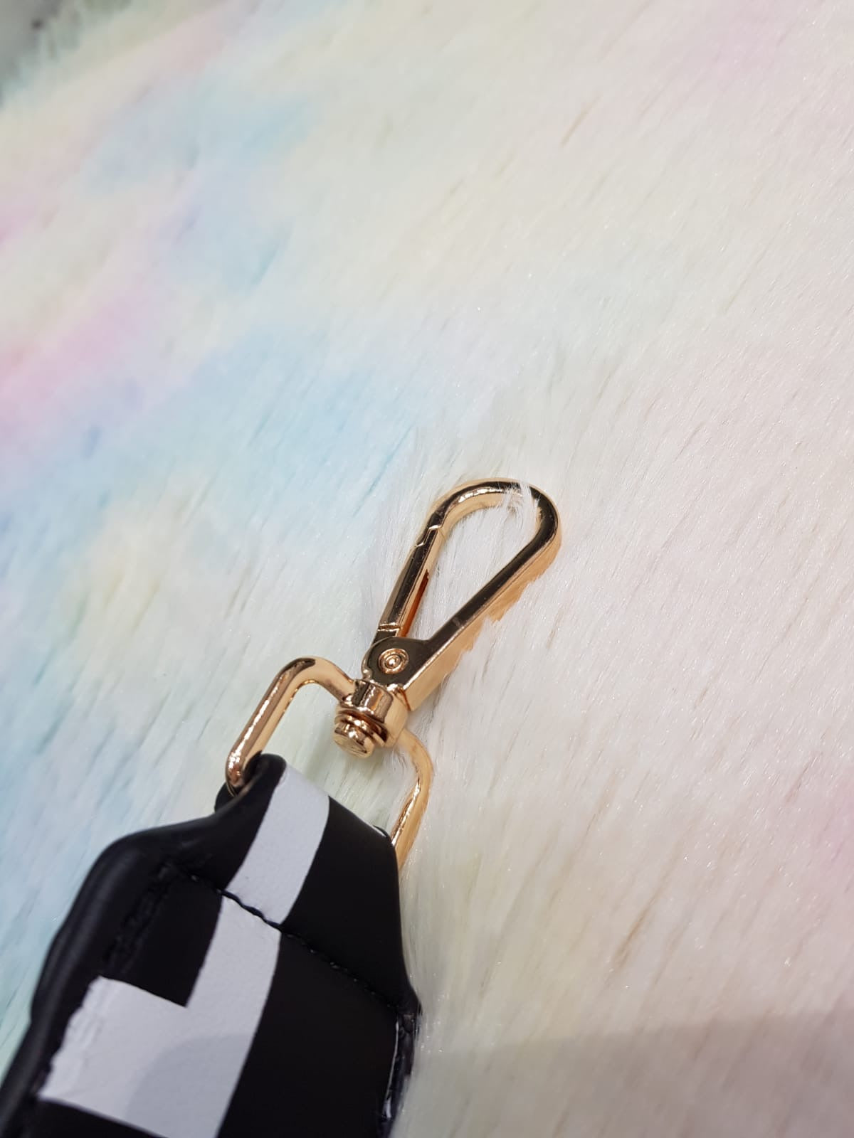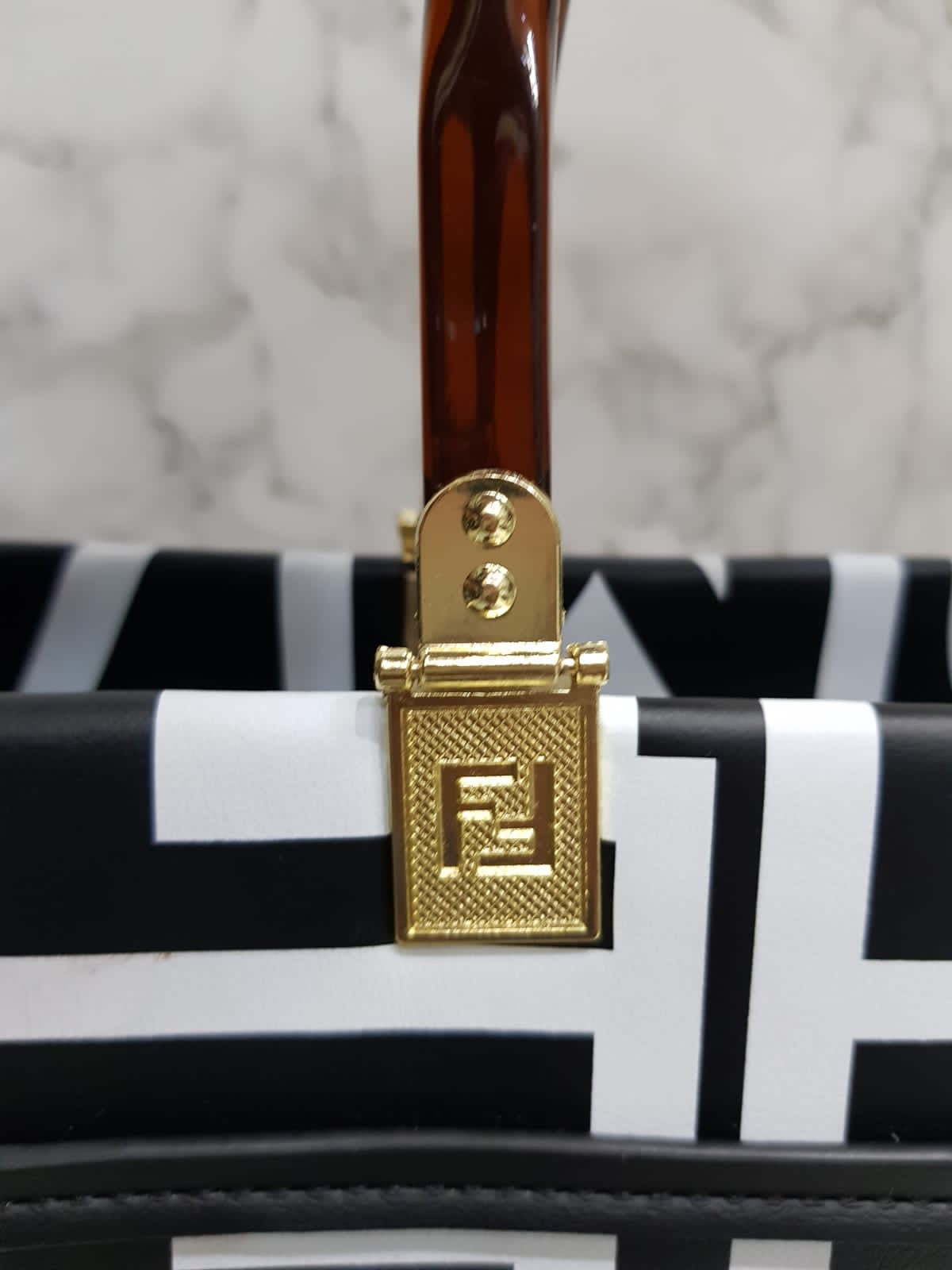 Dimensions: 38 x 30 x 12 cm Rigid plexiglass handles Roomy, lined internal compartment Gold toned hardware Detachable shoulder strap Can be carried by hand or worn over the shoulder Interior: 1 slip pocket