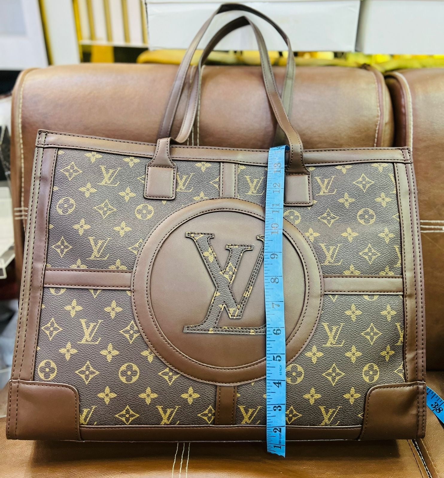 - Material: High-quality, durable leather, often in Epi, Monogram Empreinte, or Mahina leather. - Design: Structured yet flexible, providing ample space for everyday use. - Handles: Dual top handles for hand or shoulder carry, with some models offering a detachable shoulder strap. - Interior: Lined with soft fabric or microfiber, with multiple compartments and pockets for easy organization. - Hardware: Gold-tone or silver-tone metallic hardware, including zip pulls, studs, and engraved LV details. - Logo: Embossed LV monogram or logo detailing on the leather, ensuring a subtle yet recognizable design. - Functionality: Roomy enough for a laptop, documents, and personal essentials, making it ideal for work or travel.