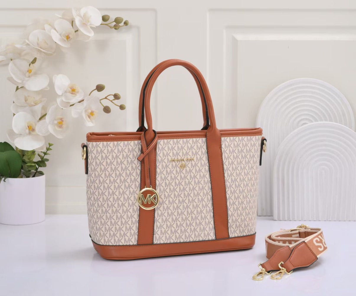 Features iconic Michael Kors branding, often with a logo print or metal plaque.