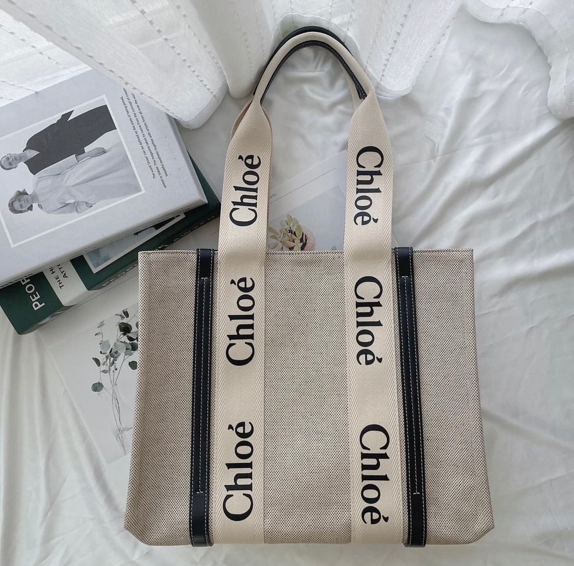 Chloe Small Woody leather tote bag - Official Model Highlight: • PU Leather • Embroidered Logo • Two top handles • Detachable shoulder strap • Main compartment • Internal logo patch