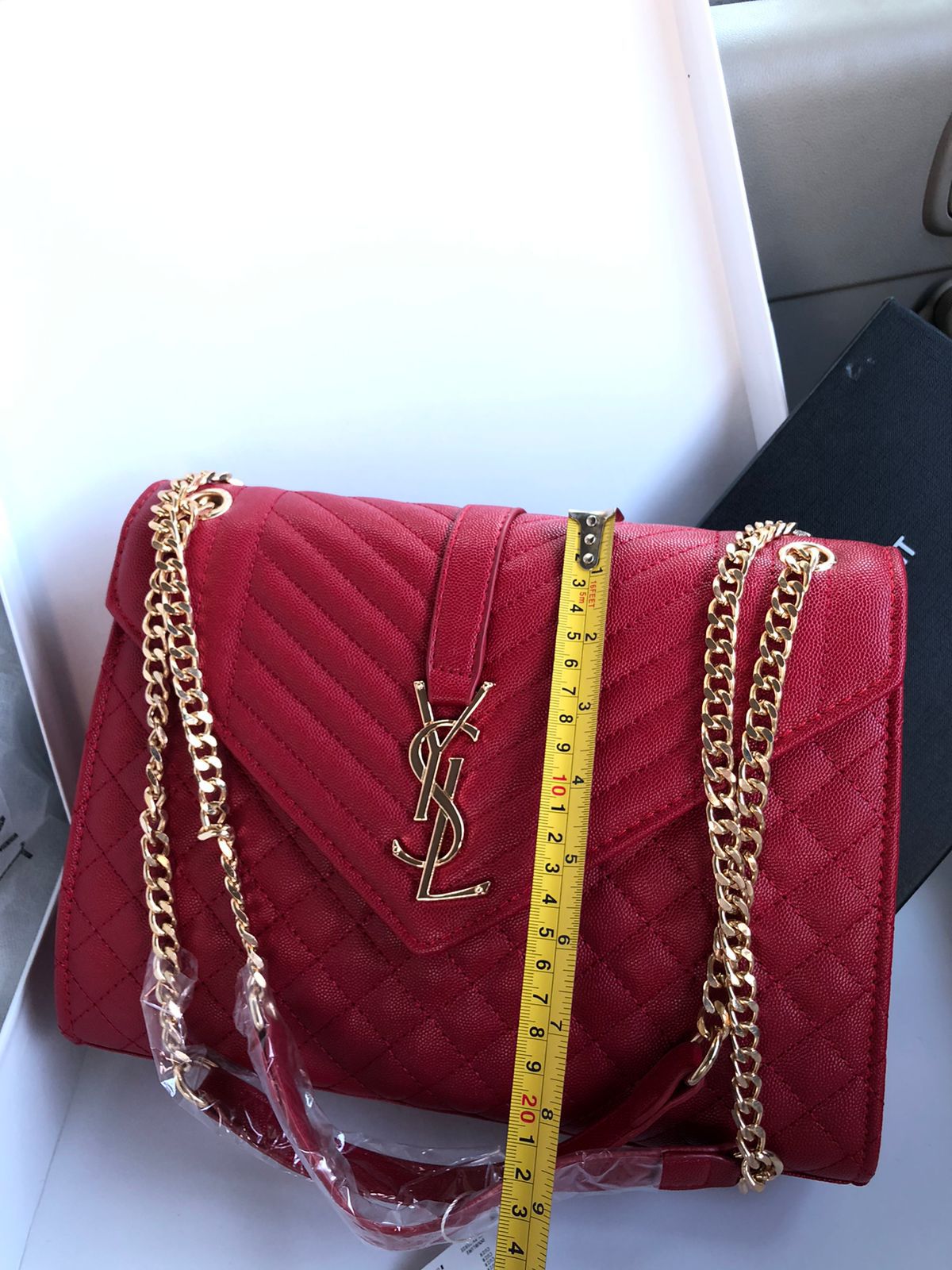 Features YSL’s signature sleek and minimalist aesthetic with a bold, recognizable YSL logo on the front.