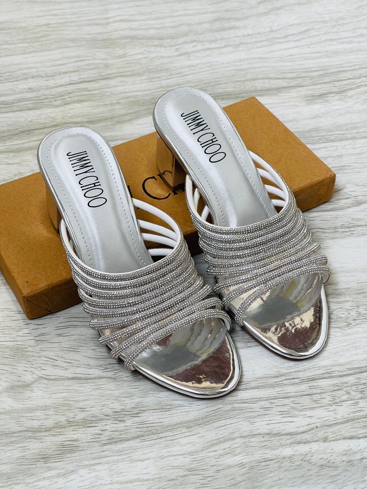 Premium materials — likely crafted from fine leather (or other high‑quality materials) typical of Jimmy Choo heels, ensuring durability and a luxury finish.